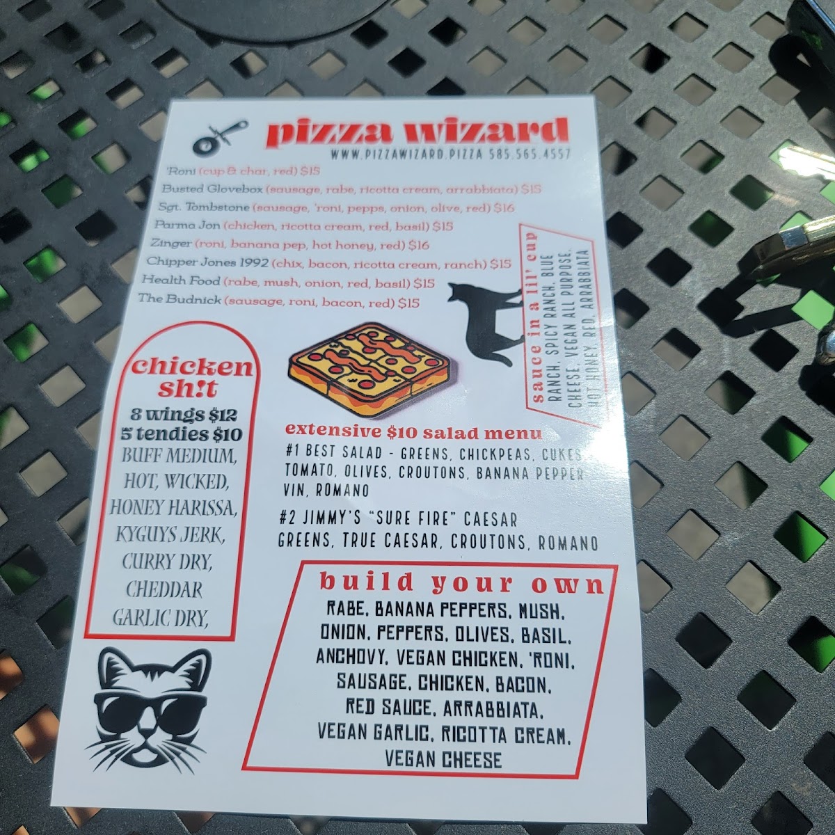 Welcome to Pizza Wizard, a magical haven for pizza lovers nestled at 760 S Clinton Ave, Rochester, NY. This unique eatery specializes in Detroit-style deep dish pizza, boasting a delightful twist: the sauce is served on top, ensuring a perfectly crispy crust that remains intact. The ambiance is inviting, with high ceilings and exposed ductwork, creating a warm and comfortable dining experience.