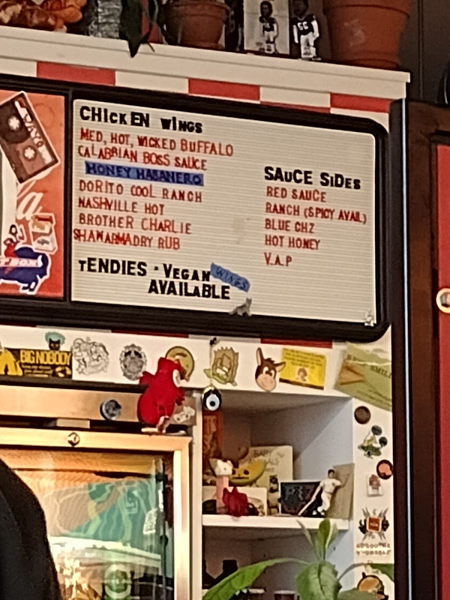 BACK BY POPULAR DEMAND. 10 piece vegan seitan wings. NOT gluten free. Even though slaw is in the picture it does NOT come with it, that's just to make it look nice for the photo.