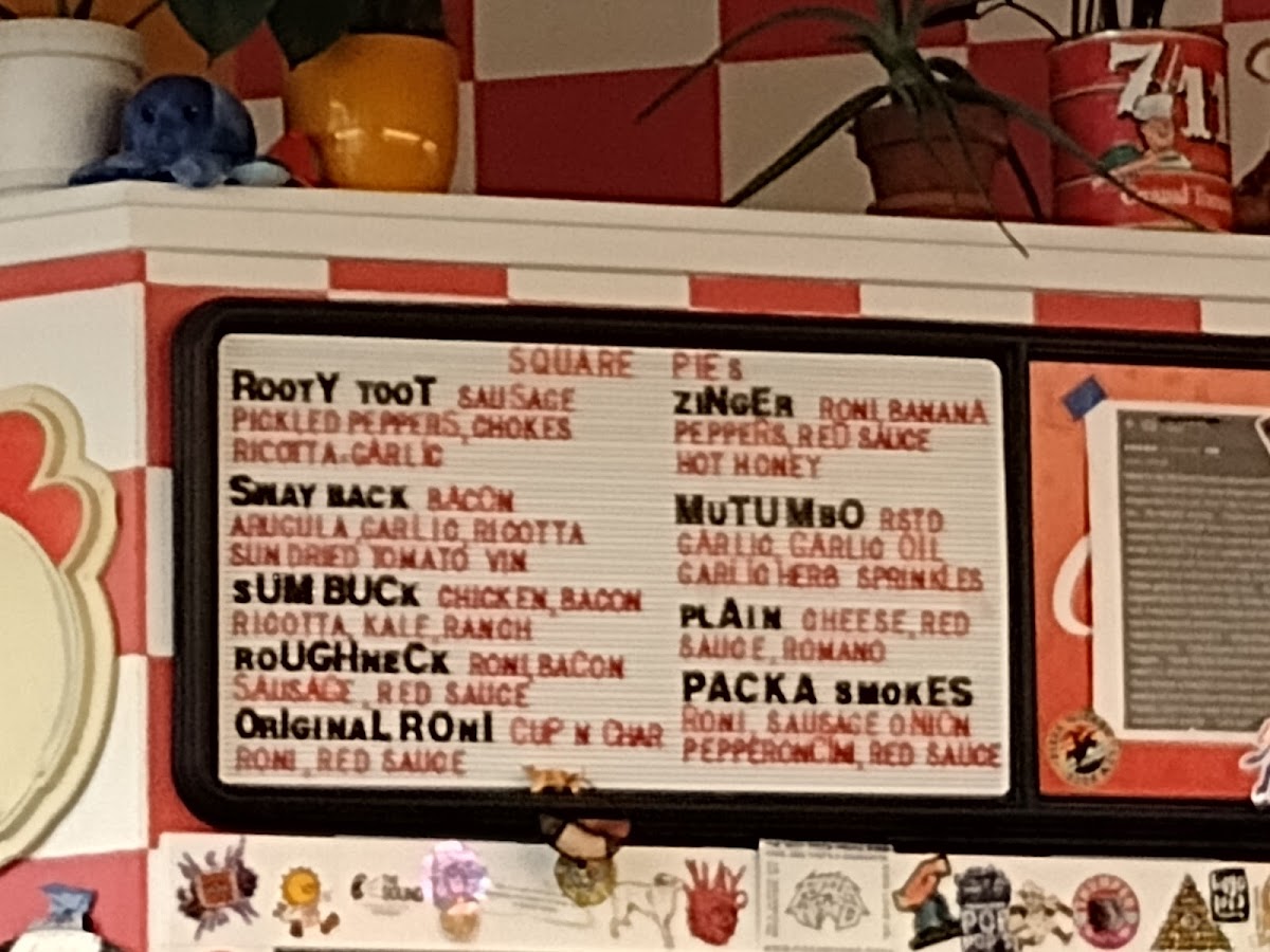 Red Sauce, Cheese, 'Roni, Pickled Banana Peppers, Hot Honey. Truly Groundbreaking.
